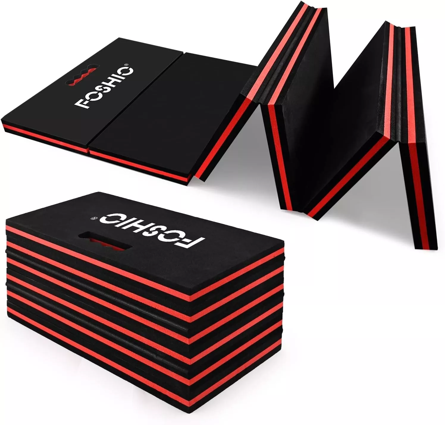 - Durable and Thick Mat: The folding mat is made from the nice EVA foam and you can wipe clean with a damp cloth no stain and no marks. The cover has a grippy texture, so you do not slide on it easily, you can even put it on top of a gravel driveway and not puncture it.